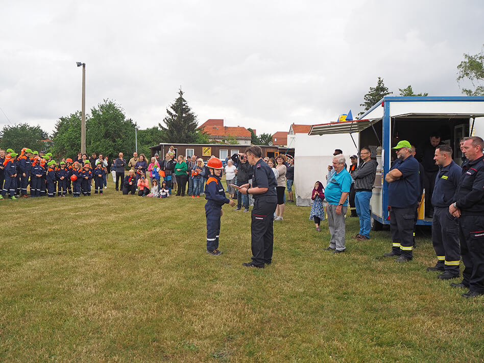 Die Fahrzeuge wurden  auch gleich eingeweiht und kamen beim Feuerwehrfest der Freiwilligen Feuerwehr Tüttleben zum Einsatz.Samstag früh um 9 Uhr starteten die Wettkämpfe der Jugendfeuerwehren. In drei Altersklassen wurde gestartet. Die  6-9-Jährigen absolvierten einen Hindernisparcours, die AK 10-18 Jahre liefen im klassischen Löschangriff nass. Tüttleben ist bekannt für seine Löschangriffmannschaften und aus diesem Grund habe ich mich dieses Jahr entschieden auch die Jugendlichen an diese Tradition heran zu führen. Der Spaß sollte im Vordergrund stehen und somit waren auch die anderen Jugendfeuerwehren aus dem Umkreis eingeladen sich im Löschangriff zu versuchen. Diesem Aufruf folgten sechs Jugendfeuerwehren mit insgesamt 16 Mannschaften. Ich freue mich, dass so viele den Weg zu uns gefunden haben.