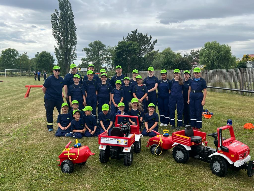 Zum diesjährigen traditionellen Feuerwehrfest am 09. Juli 2022 war es endlich soweit. Nun ist es offiziell: zwei Unimog-Fahrzeuge nebst Löschanhänger wurden in den Dienst der Jugendabteilung gestellt.