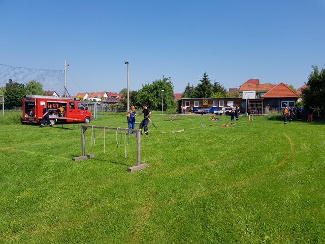 Wir haben an diesem Tag eine erste Übung für den Pokalwettkampf der Thüringer Jugendfeuerwehren in der Altersklasse 6-9 Jahre sowie für die Gruppenstafette der Altersklasse 10-18 Jahre durchgeführt. Dazu gab es coole Teamspiele, ein Löschangriff wurde geprobt und wir erfuhren einiges zu den Funktionen verschiedener Strahlrohre.